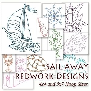 Sailing Redwork Nautical Embroidery Machine Designs on CD